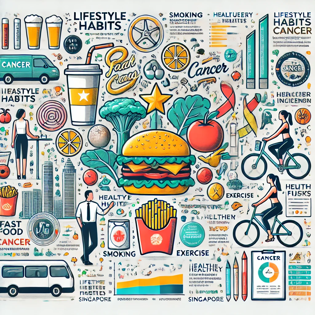 싱가포르는 빠르게 발전한 도시 국가로서 **서구식 식습관, 운동 부족, 흡연 및 음주 증가**와 같은 생활 습관 변화가 암 발생률 증가에 영향을 미치고 있습니다. 연구에 따르면 특정 생활 습관이 **유방암, 대장암, 폐암, 간암** 등의 발생 위험을 높이는 것으로 나타났습니다.