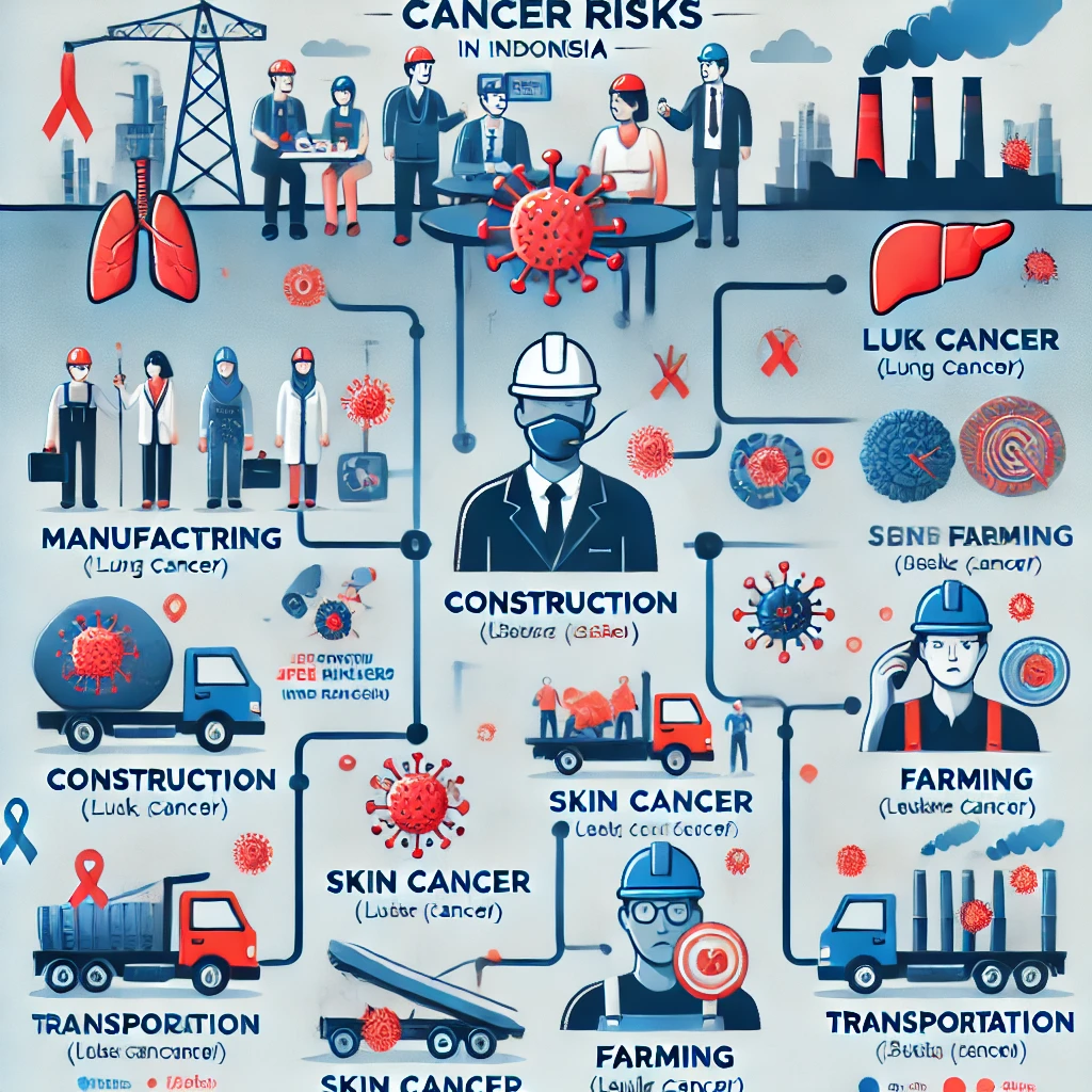 암은 다양한 요인에 의해 발생하지만, 특정 직업군에서 발암 물질 노출이 잦거나 건강을 해치는 근무 환경이 조성될 경우 암 발생률이 높아질 수 있습니다. 인도네시아에서도 일부 직업군에서 암 발생률이 상대적으로 높은 경향을 보이고 있으며, 이는 작업 환경과 밀접한 관련이 있습니다.