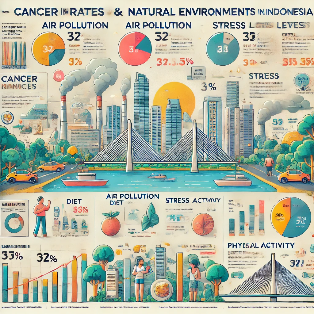세계보건기구(WHO)와 인도네시아 보건부 자료에 따르면, 대도시에서 폐암, 대장암, 유방암, 전립선암의 발생률이 높고, 농촌이나 자연 환경에서 생활하는 사람들은 이러한 유형의 암 발생률이 상대적으로 낮게 나타나고 있습니다.